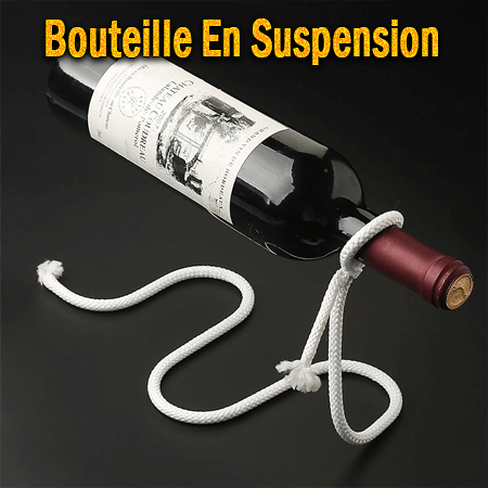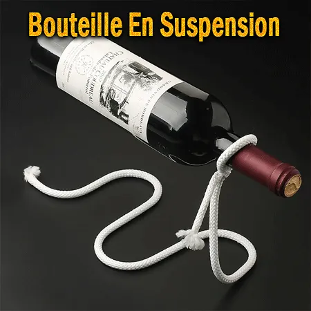 Voici une charmante illusion : une bouteille semble être magiquement suspendue à un simple morceau de corde.