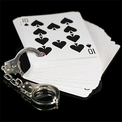 Le magicien présente aux spectateurs un paquet de carte avec un coin supérieur troué ainsi qu'une paire de menottes miniatures. Les cartes sont extraites du paquet, elles sont aussi trouées. Le spectateur peut mélanger les cartes.