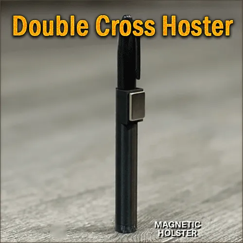 Le Double Cross Holster est l’accessoire ultime pour transporter et utiliser votre Double Cross en toute discrétion. Conçu sous la forme d’un tube noir élégant imprimé en 3D, il se dissimule parfaitement sous votre manteau, maintenu fermement en place grâce à des aimants en néodyme puissants. Il allie efficacité et discrétion, permettant une utilisation facile et rapide de votre accessoire magique.