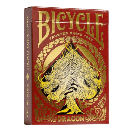 Les cartes à jouer Bicycle Red Dragon célèbrent l'Année du Dragon avec des designs somptueux et une symbolique forte. Figures personnalisées inspirées du kimono, dragons dorés sur fond rouge écarlate et cadre en feuille d'or : ces cartes uniques marquent le retour du dragon dans le zodiaque chinois pour 2024.