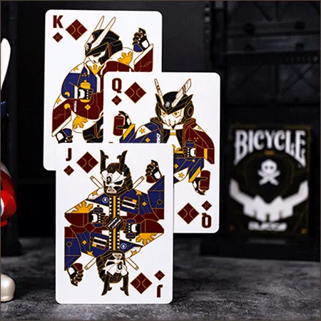 Chaque carte présente des illustrations 100 % originales dans un style mecha-street unique, avec une finition Air-Cushion Bicycle® pour une fluidité et une durabilité inégalées.