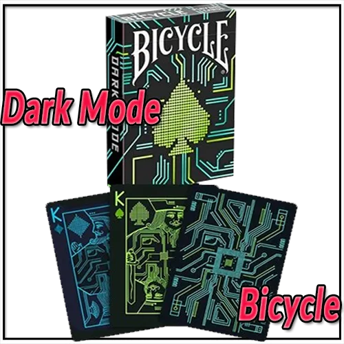 Les cartes à jouer Bicycle Dark Mode apportent de l'énergie à votre soirée de jeu et à vos mouvements cardiaques! Utilisant une palette de couleurs inversée, le dos et les cartes de jeu personnalisés Bicycle Dark Mode apportent la connectivité de notre monde numérique à votre table de cartes la plus proche.