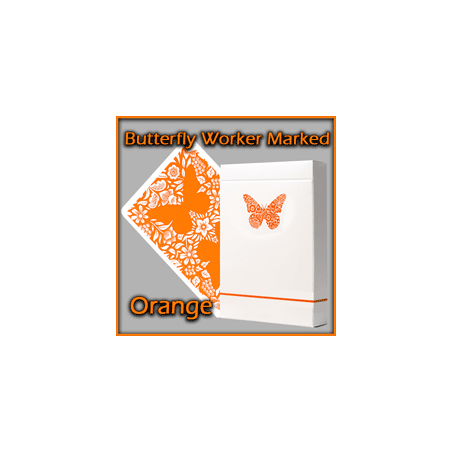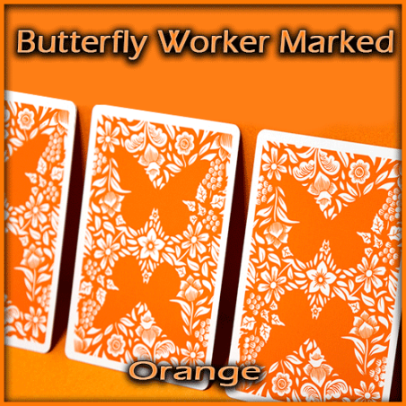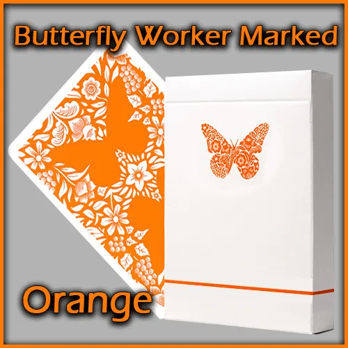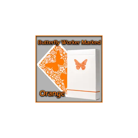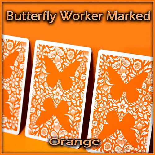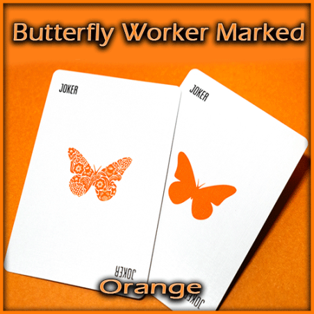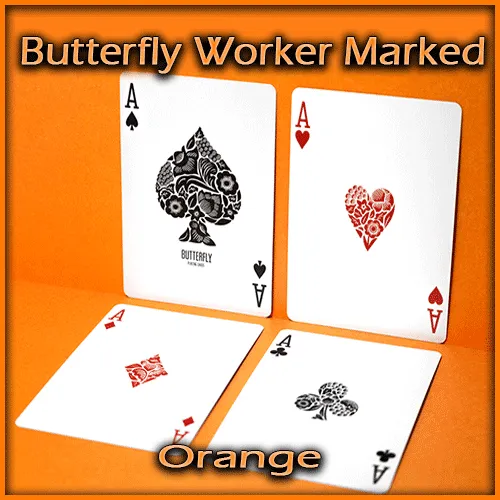 Découvrez la magie éclatante de Butterfly Worker Marked Orange par Ondrej Psenicka. Une édition limitée de cartes à jouer Butterfly au design classique avec une bordure orange vibrante. Parfaites pour les magiciens, ces cartes offrent polyvalence et qualité inégalée. Ne manquez pas cette édition limitée, seulement 1 250 jeux imprimés.