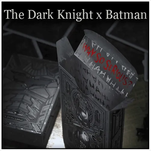 Chaque aspect des cartes à jouer The Dark Knight Trilogy a été créé à partir de zéro : y compris les costumes personnalisés, les conceptions de personnages, les as, la conception du dos et tout le reste ! Si vous regardez attentivement, vous remarquerez plusieurs œufs de Pâques qui satisferont même le plus grand fan.