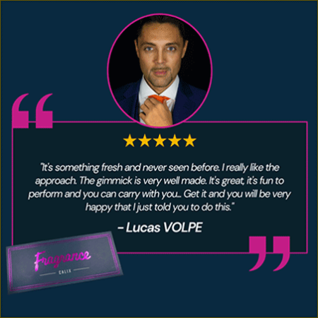 Fragrance n’est pas juste un gimmick, c’est une véritable boîte à outils magique. Il s’intègre facilement dans tout type de spectacle : close-up, salon, mentalisme, hypnose…