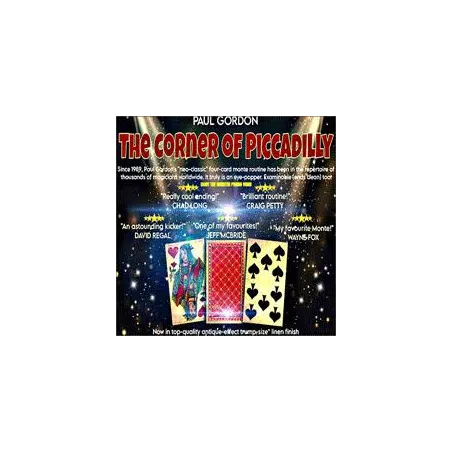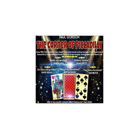 Depuis la fin des années 80, The Corner of Piccadilly est une routine de bonneteau puissante avec un final percutant. Le tour ne nécessite aucun gimmick ni carte truquée. Tout est examinable et le remise en place est instantanée, ce qui en fait un outil parfait pour les magiciens de terrain.