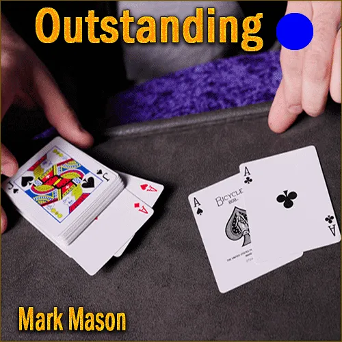 OUTSTANDING de Mark Mason est un gimmick ingénieux qui s’intègre directement dans votre jeu de cartes classique. Il permet de réaliser des changements de cartes visuels, à vue, sans aucune couverture. Les cartes restent constamment visibles par le spectateur, rendant l'effet inexplicable et percutant.