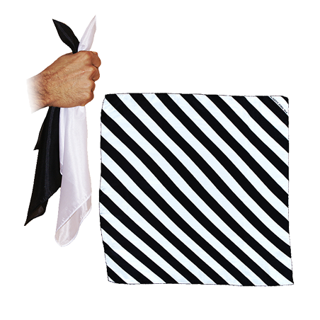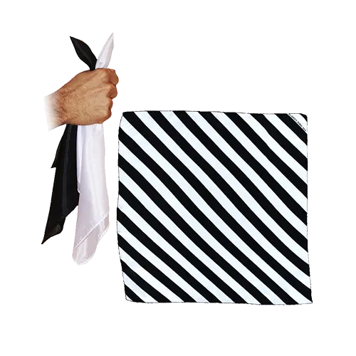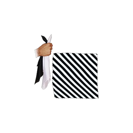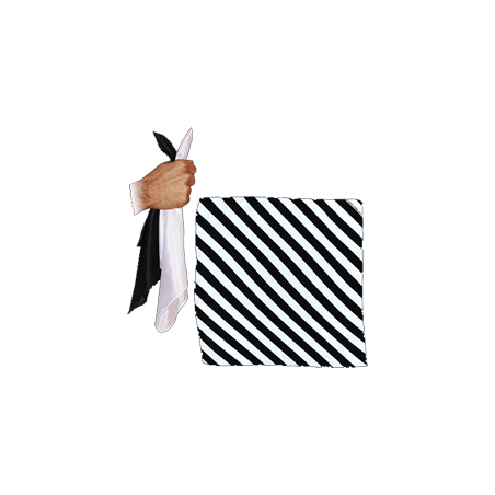 Le magicien montre deux soies de couleurs différentes et les change comme par magie en une seule soie "zébrée" avecdes rayures diagonales.